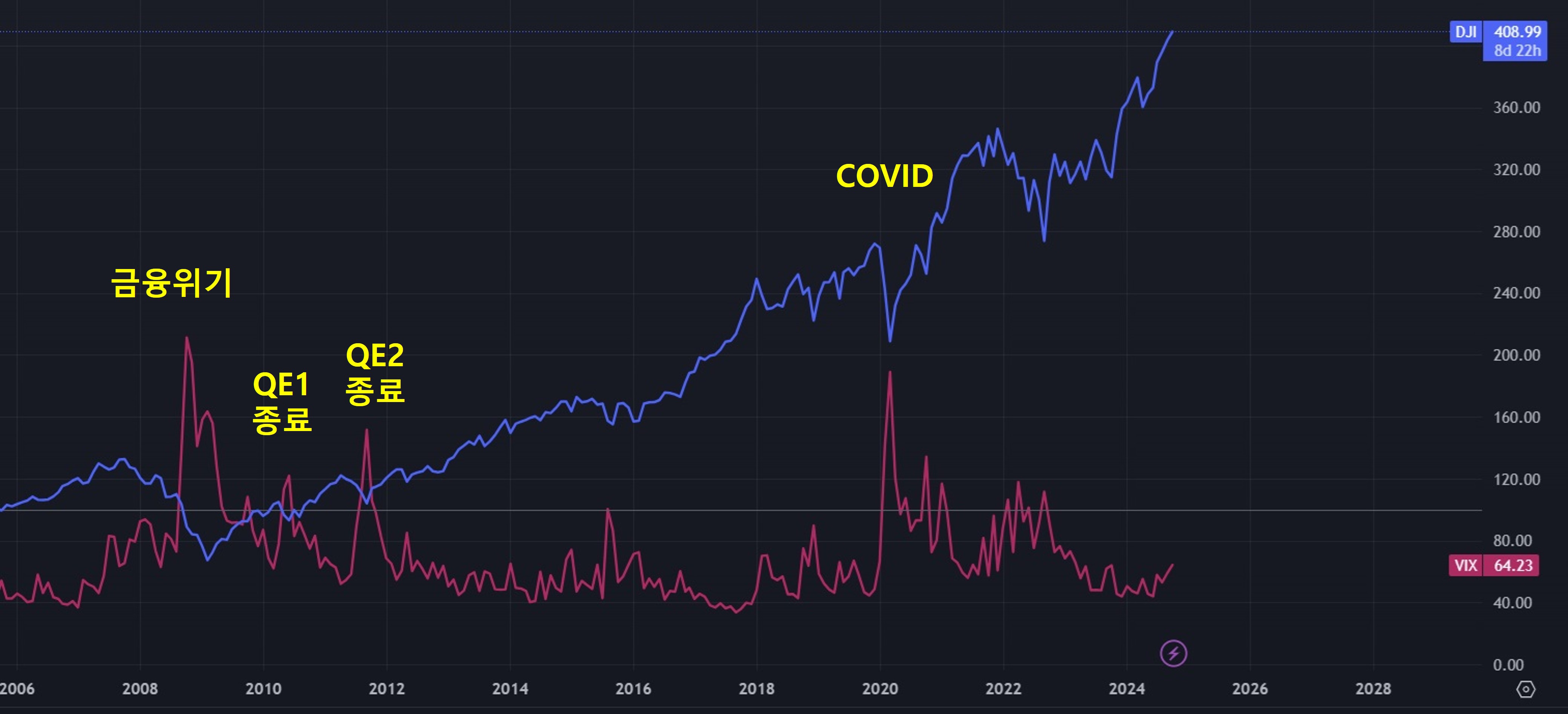이때 VIX는 48.20까지 상승하며 양적 완화 종료에 대한 시장의 불안감을 반영했습니다.